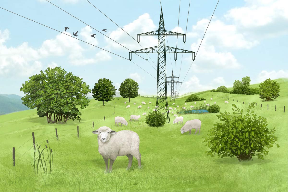 Eingriffe in den Naturraum bei Bauarbeiten müssen je nach Stärke an anderer Stelle kompensiert werden. Wenn Sie FlächeneigentümerIn unter einer Stromleitung sind, so können Maßnahmen auf Ihrer Fläche, die eine ökologische Aufwertung mit sich bringen, in Form von Ökopunkten monetär